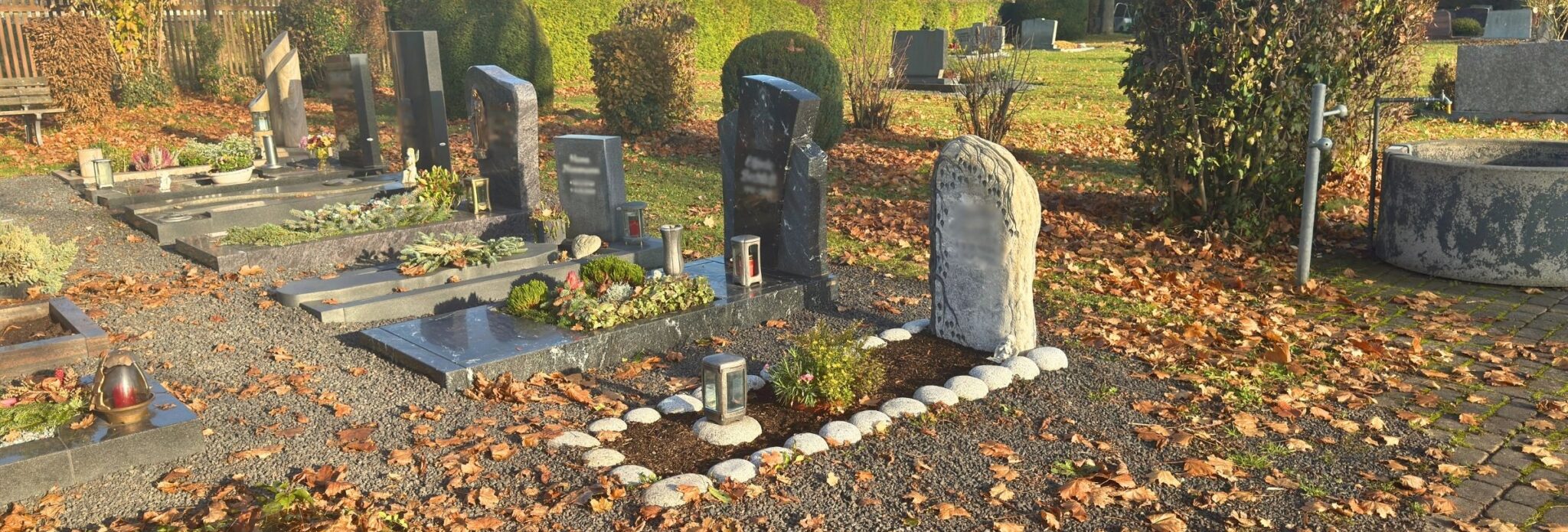 - Das Aufstellen von Grabschmuck an der Grabstätte ist möglich