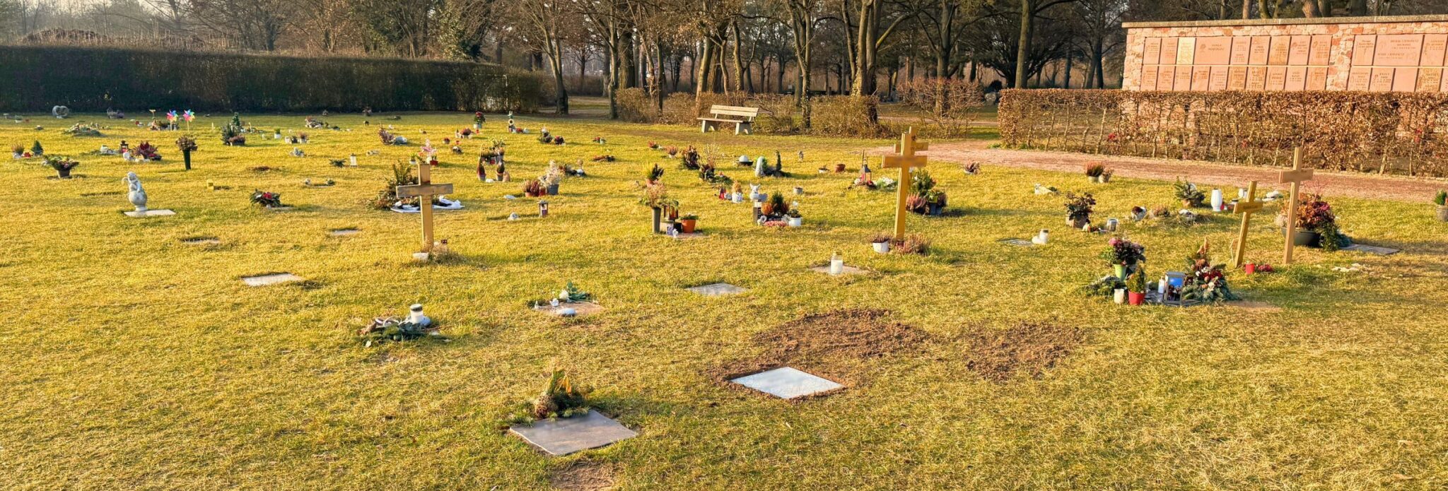 - Die Position der Grabstätte auf dem Friedhof kann nicht gewählt werden. Die Belegung erfolgt im jeweiligen Grabfeld der Reihe nach.